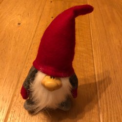 En söt liten tomte med röd luva och vitt skägg. Perfekt som juldekoration eller som en mysig detalj i hemmet. Höjden är cirka 20 cm.
