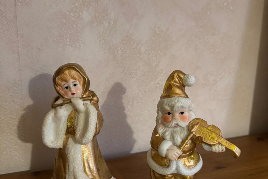 Två fina julprydnader i form av en tomte och flicka med varsitt instrument. Perfekta för att skapa julstämning i hemmet.