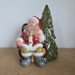 En jultomte med svart luva och röd jacka samt svarta skor. Tomten passar perfekt för att skapa julstämning i hemmet. Tomten är cirka. 15 centimeter hög. Den är i använt men okej skick. Tecken på användning finns, se bilder. Varan kommer från ett djur och rökfritt hem.