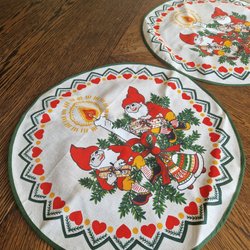 Retro duk med tomtar röd blå vit 60-tal tryck JUL ADVENT