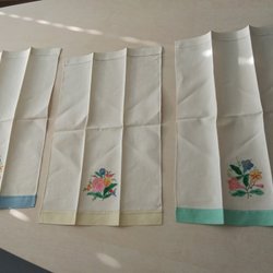 Spår efter tvätt och användning finns. Kan användas som dukar eller gardinlängder.