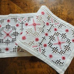 Charmig gammal julbonad handbroderad tomtar I kök 82×43cm lantlig Jul
