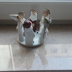 Rund julduk med tomtar .