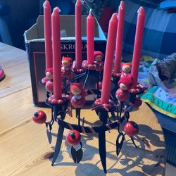 En söt julgardin 180 lång 60 bred med tomtar liten jullöpare med pyntsaker