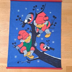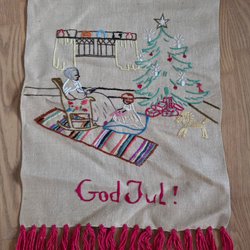 En fin julbonad med motiv av ljusstakar, hjärta och texten "God Jul". 83x39 cm. Mycket fint skick.
