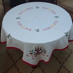 Äldre handbroderad julduk.