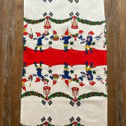 En fin julduk med tomtar. Ca 77 x 77 cm. Fint skick men tyvärr har jag inte haft möjlighet att tvätta den, så det är någon kaffefläck här och där. Går säkert bort i tvätten. #jul #julpynt ##julduk #juldekoration