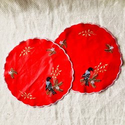 Mått duk med tomtar och julstjärnor: 25x25 cm.