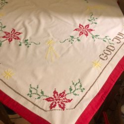 Äldre handbroderad julduk