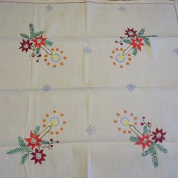 Retro tryckt grön duk med röda tomtar