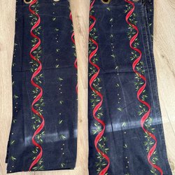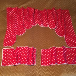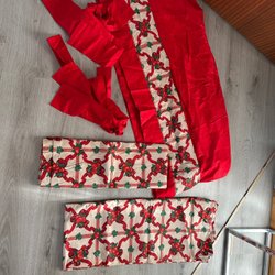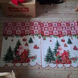 Två gardinlängder i en mörkröd nyans och lite genomskinliga.
