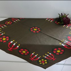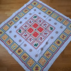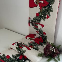 Lite ”gammeljul” känsla på dennactryckta Julduk i rött på vit botten