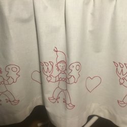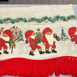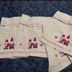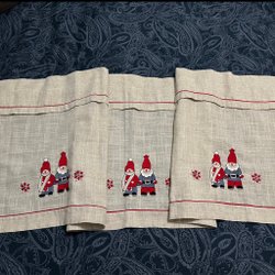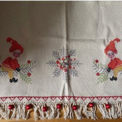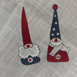Julgardin med broderade tomtar
