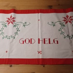 Ett sortiment av jultextilier. Sammanlagt 34 st med bl.a. Dukar,löpare, väggbonader,gästhanddukar. Alla i bra skick