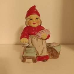 Två änglar i keramik. En spelar dragspel och den andra harpa. Osäker på ursprung