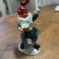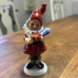 En söt vas med målade detaljer av bland annat kottar och bär. Perfekt som prydnad eller vas för en liten blomma eller grankvist på julbordet. 11,5 cm lång o 6 cm hög.