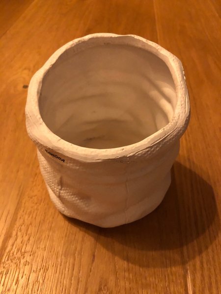 Kruka från Taroca,i form av Tomte säck.Cirka 13 cm hög,omkretsen ca 13 cm.