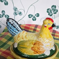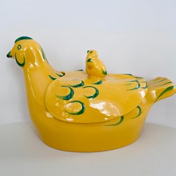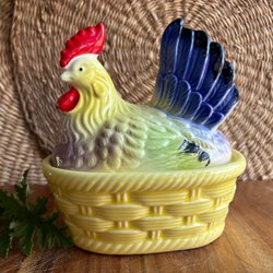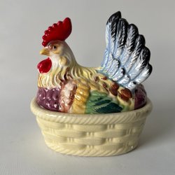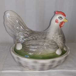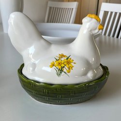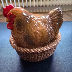 Ägghöna i porslin. Det finns två små nagg i kanten av skålen, se bild. För övrigt fint skick. Längd 14 cm.