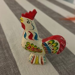 Påsktupp i rött, grönt och svart. Handmålad med detaljerade mönster. Passar som prydnadsföremål.