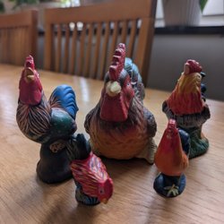 Påsk : En grupp hönor/tuppar , ca 10-12 cm höga . Kolla gärna mina andra annonser , sampackar 7 dagar . OBS!!! Använder mig av traderas vinnarmail , där finns alla uppgifter vid köp . OM Du budar hem fler objekt invänta mail om nya fraktpriset