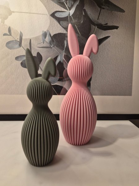 Dessa påskharar är perfekta för att skapa en festlig atmosfär. De är designade med en räfflad yta och kommer i två färger, rosa och grå. Kan användas som dekoration under påsken eller som en charmig inredningsdetalj året runt.