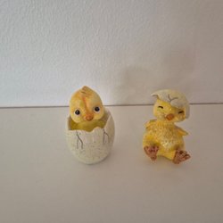 Ett set med handstickade kycklingar i olika färger och storlekar. Perfekt som dekoration till påsk.
