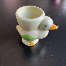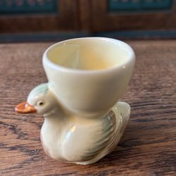 Äldre äggkopp i porslin i form av en anka.