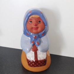 1 st. påskkärring, höjd 8,3 cm, med äggkorg, prickigt huckle, fina färger, design Rolf Berg, Torshälla, Sweden, titta noga på bilderna innan bud