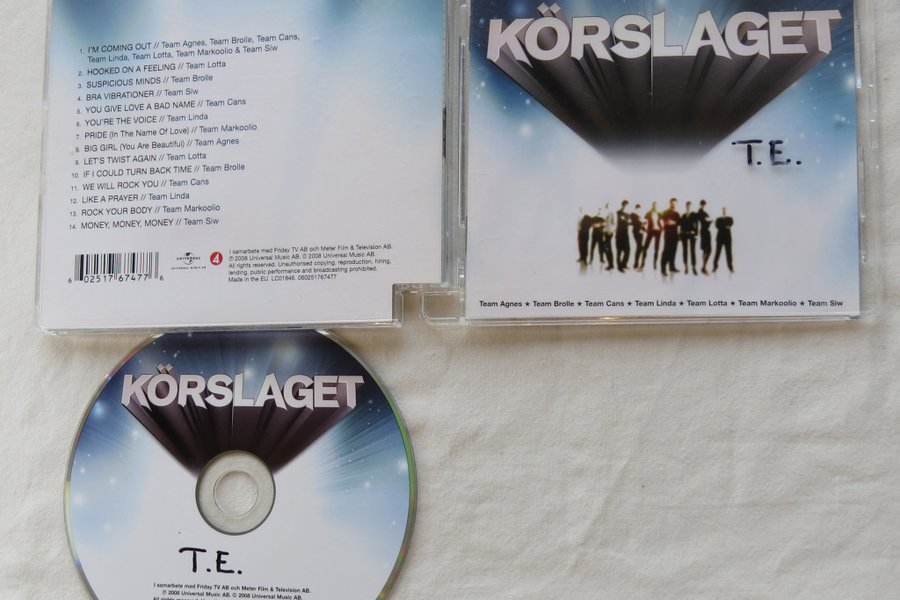 CD-albumet ”Körslaget T.E.” från 2008 innehåller 14 låtar framförda av olika team från TV-programmet Körslaget. Skivan är producerad i samarbete med Friday TV AB och Meter Film & Television AB. Utgiven av Universal Music AB. Streckkod: 602517674776.