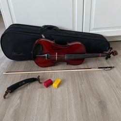 Ingen stråke ingår bara väskan och fiolen.