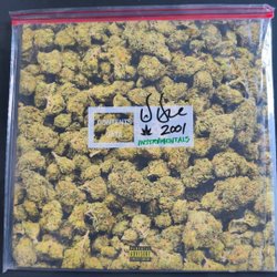LP album by Dr. Dre titled "2001". The album features a cover designed to look like a bag of cannabis.