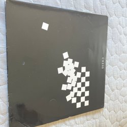 Dubbel-LP med musikalen CHESS. Skivorna är svarta och vita. Omslaget är svart med vita schackrutor.