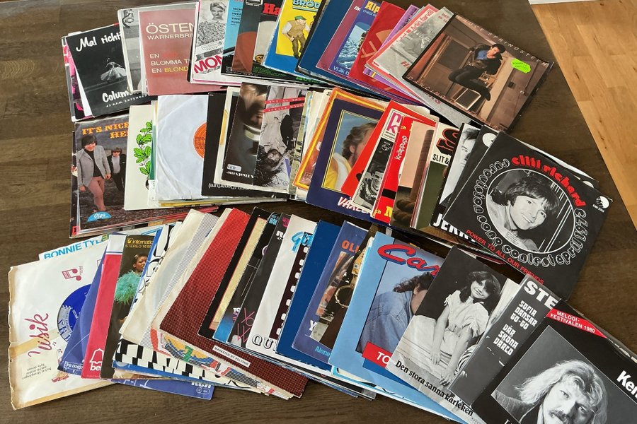 Ett parti med blandade singlar från olika artister och genrer. Innehåller titlar som "Mal richt", "Östen Warnerbring - En blomma till en blond", "It's Nice", "Ronnie Tyler", "Bruce Springsteen - Dancing in the Dark", "Slit & Elli Richard", "Sofia Dansar Go-Go". Skivorna är i varierande skick och kan vara ett intressant tillskott för samlare eller den som vill utforska äldre musik.