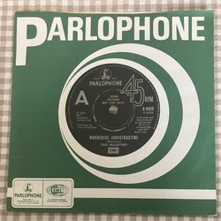 Sjælden Beatles single "Get Back / Don't Let Me Down" fra 1969. Denne udgave er en mispressing, hvor der står "Don't Let Me Down" på labelen, men den afspiller (Paul McCartney) Wings' "I've Had Enough".