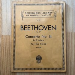 Noter för "Trauermarsch" (Marche funèbre - Funeral March) av Beethoven, från op. 26. Utgiven av EDITION SCHOTT som en "EINZEL AUSGABE" (enskild utgåva). Innehåller även en lista över "Verschiedene Werke" (Olika verk) och "Sonaten" (Sonater). Tryckt i Tyskland.