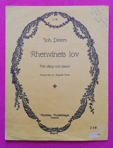Rhenvinets lov. Nordiska Musikförlaget, 1950-talet. Lösnot för sång & piano.