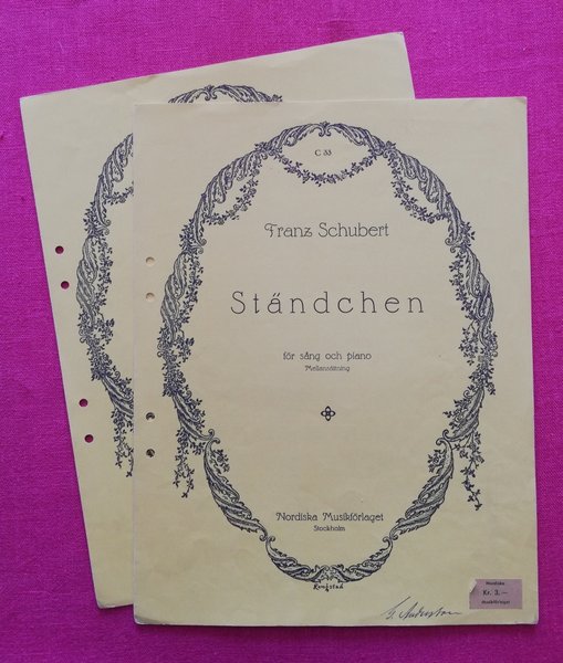 Ständchen. Nordiska Musikförlaget 1950. Franz Schuberts berömda serenad. Lösnot för sång / piano. OBS! Två exemplar.