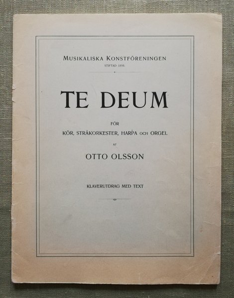 Te Deum. Musikaliska konstföreningen 1948. 36-sidigt häfte, klaverutdrag och sångstämmor (SATB).