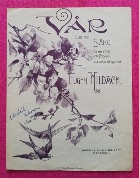 Vår. Nordiska Musikförlaget, 1950-talet. Solosång komponerad av Eugen Hildach. Lösnot för sång / piano.