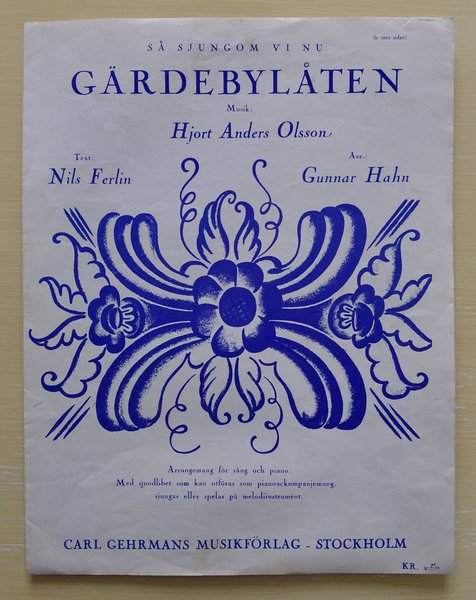 Gärdebylåten. Gehrmans 1953 . Lösnot för sång och piano. Hjort-Anders Olssons berömda låt arrangerad av Gunnar Hahn.