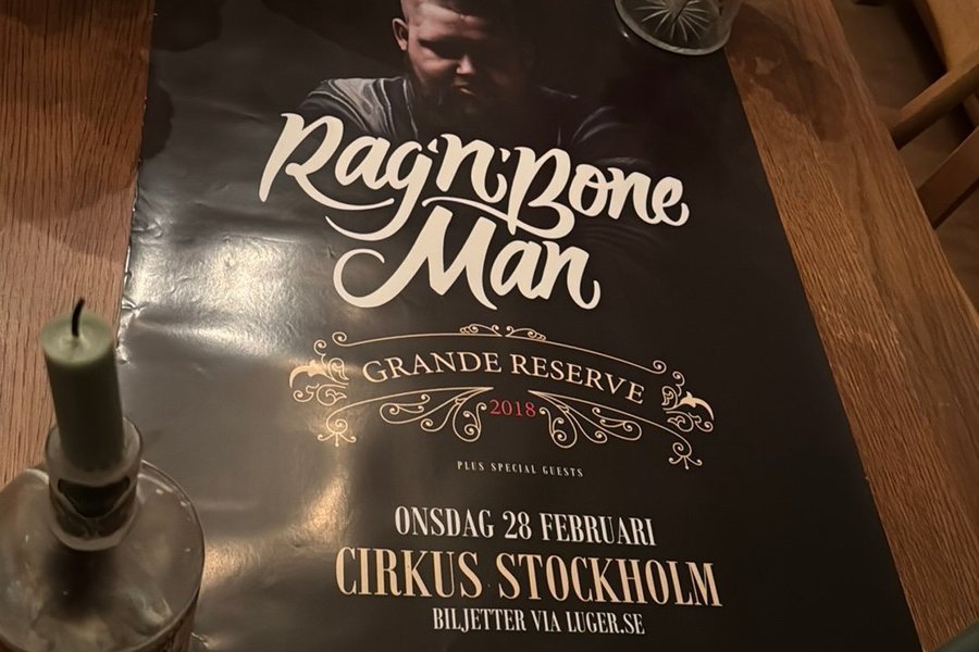 Affisch från RagnBone Mans konsert på Cirkus i Stockholm, onsdag 28 februari 2018. Grande Reserve.