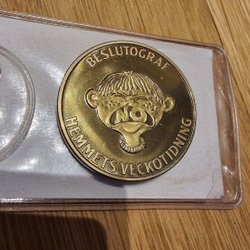 Ett historiskt kopparmynt präglat 1719. Myntet har inskriptionen 'hoppet' på ena sidan och '1 DALER SM' på andra sidan.