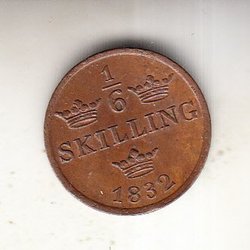 Karl XIV Johan - 1/6 Skilling 1832