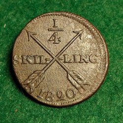 Här är en 1/4 Skilling från 1820.