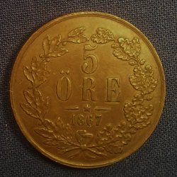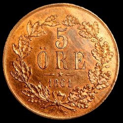 Karl XV - 5 Öre 1864/2 - Mycket vackert orört exemplar