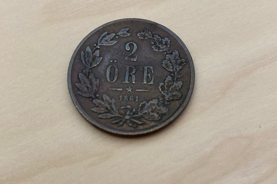 Ett samlarobjekt från 1861 med valören 2 öre.