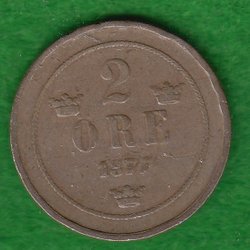 2 ÖRE 1877 173 Lång text