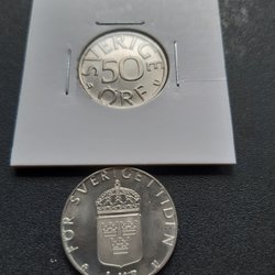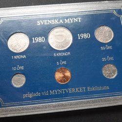 Setet innehåller 2 silvermynt och 1 bronsmynt. I det tomma hålet ska det vara ett guldmynt