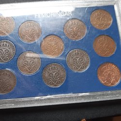Ett set med mynt präglade under Oscar II:s regeringstid, från 1872 till 1907.