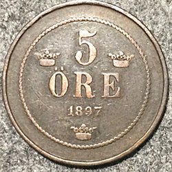 5 öre 1898, med 4 ränder i kronan.